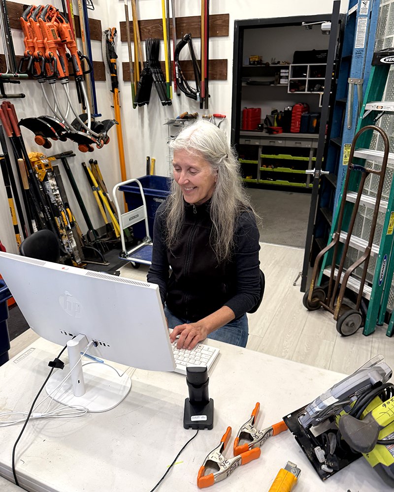 At the Berkeley Tool Library, on a recent Monday morning, a curly-haired, bespectacled young man is returning a demolition hammer. He’s wearing jeans and a sweatshirt, with a worn leather bookbag slung over his shoulder. He tells me he used the tool to remove old concrete paving in his yard. According to library staff, tool lending follows a seasonal pattern. In December, ladders and extension cords are in high demand (think Xmas lights). In October rakes and leaf blowers top the list. In 2024 the most popular tools at the Berkeley Tool library were: weed wacker, 50’ extension cord, drill bits and pole saw.